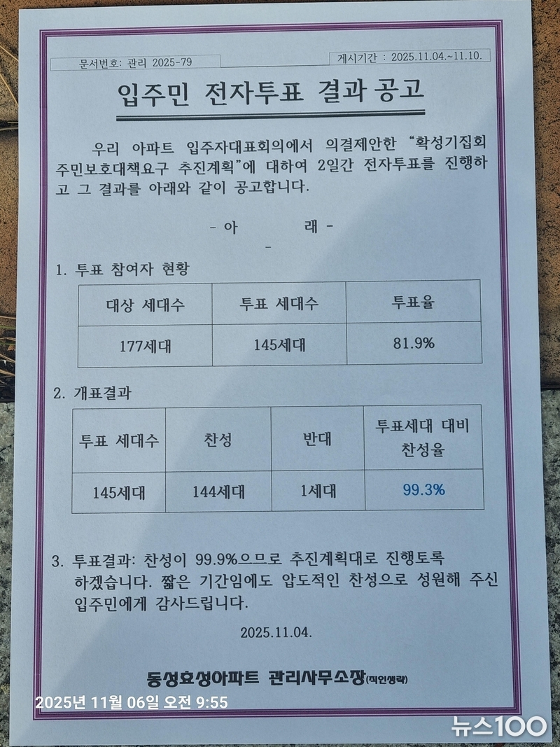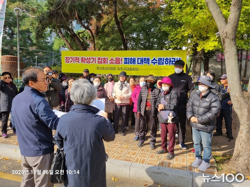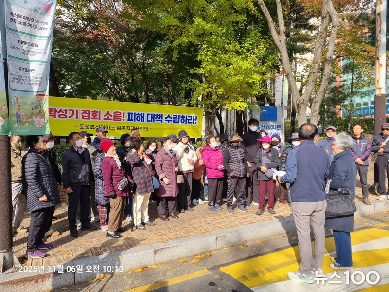 2025년 11월 6일 목요일 오전 10시, 참다못한 아파트 주민들이 모여 ‘평택서문 확성기집회로 인한 극심한 피해를 호소하는 집회가 열렸다. 확성기집회장소 건너편(20여m추정) 동성효성 아파트 주민(투표참여자 145가구 99,9% 찬성)주최로 주민보호대책 촉구대회가 열렸다.