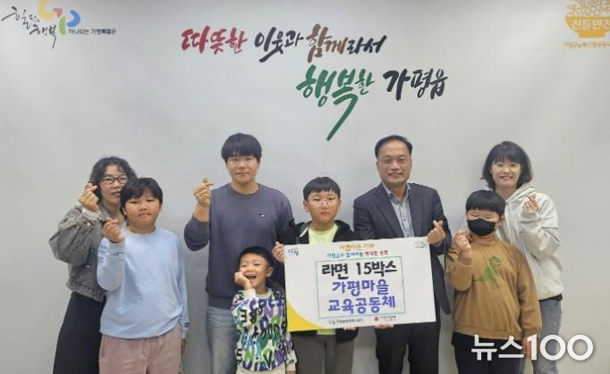 뉴스100 김동초 기자 | 가평군 가평마을교육공동체는 최근 가평읍 행정복지센터를 방문해 이웃돕기 성품으로 라면 15박스를 전달했다. 이번 성품은 ‘가마공 벼룩시장’에서 아이들이 팀을 이루어 직접 물건을 준비하고 판매에 참여해 얻은 수익금으로 준비한 것이다.