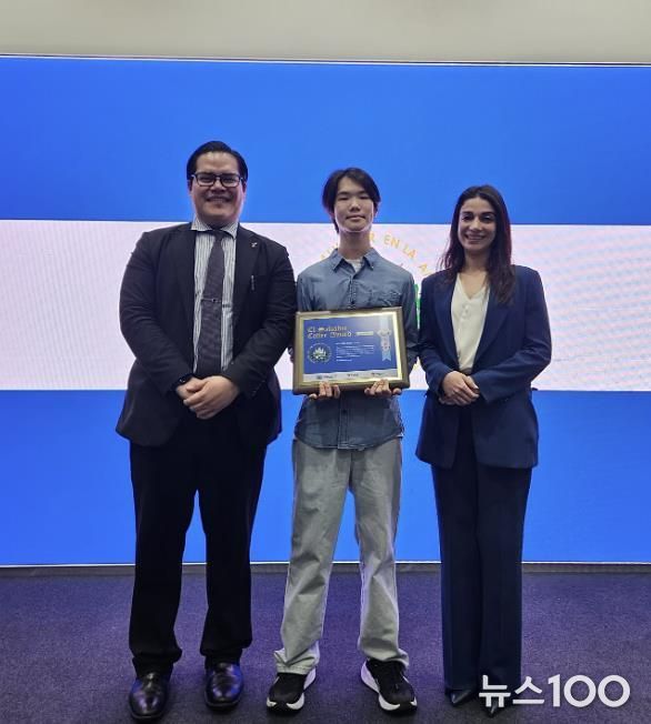 뉴스100 김동초 기자 | 시흥시는 배곧2청소년문화의집 소속 소한서(15세) 학생이 지난 11월 7일 수원메쎄 전시장 내 커피살롱에서 열린 ‘2025 코리아 커피·디저트페어 엘살바도르 커피대회’에서 최연소로 우승을 차지하고, 11월 8일 열린 시상식에서 ‘엘살바도르 대사상’을 수상했다고 밝혔다.