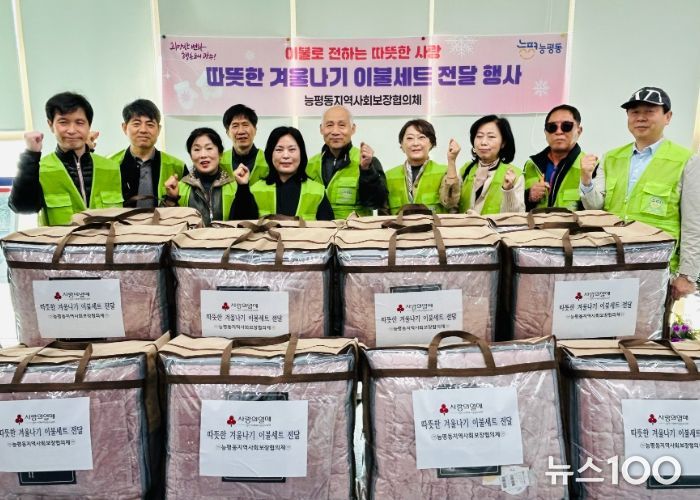 뉴스100 김동초 기자 | 광주시 능평동 지역사회보장협의체는 11일 지역 내 홀몸 어르신 및 저소득 취약계층 30가구를 대상으로 ‘겨울나기 이불 나눔 사업’을 실시했다.