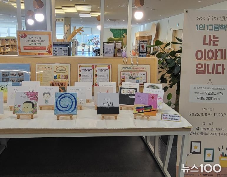 뉴스100 김동초 기자 | 수원특례시 망포글빛도서관이 11월 23일까지 1층 로비에서 ‘길 위의 인문학: 1인 1그림책 나는 이야기입니다’ 전시를 연다.