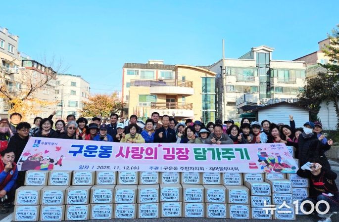 뉴스100 김동초 기자 | 수원시 권선구 구운동 행정복지센터는 12일, 구운동 행정복지센터에서 관내 어려운 이웃을 위한 ‘2025 사랑의 김장 나눔’ 행사를 진행했다.