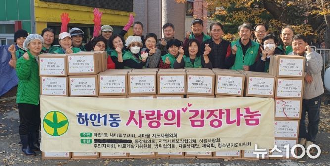 뉴스100 김동초 기자 | 광명시 하안1동 새마을부녀회와 새마을지도자협의회는 지난 11일부터 12일까지 하안1동 행정복지센터 앞마당에서 ‘사랑의 김장 나눔 행사’를 열었다.