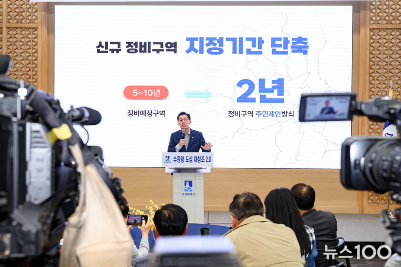 사진4) 지난해 5월 이재준 수원특례시장이 도시재정비 활성화 전략을 발표하고 있다.