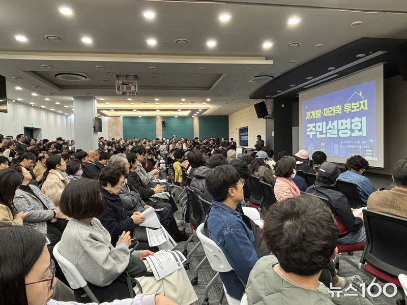 사진5) 지난 6일 수원시 재개발·재건축 정비사업 후보지 주민설명회에 참석한 주민들이 설명을 듣고 있다.