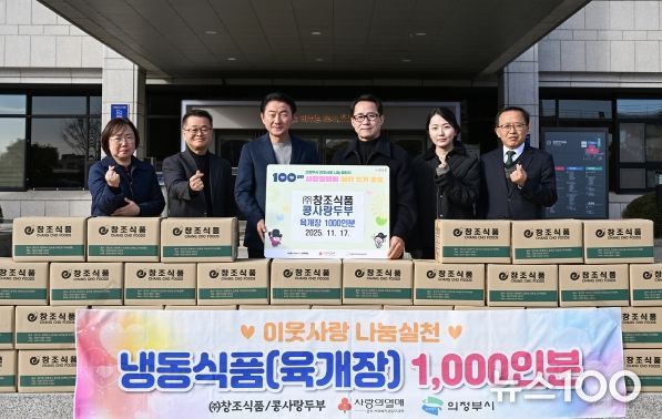 뉴스100 김동초 기자 | 의정부시는 11월 17일 ㈜창조식품이 냉동식품(육개장) 1천인분(550만 원 상당)을 송산·신곡권역에 기부하며 ‘100일간 사랑릴레이 배턴 잇기’ 에 동참했다고 밝혔다.