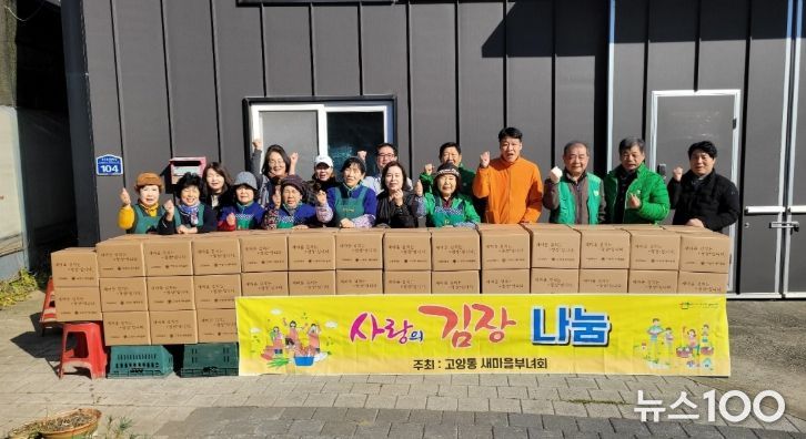 뉴스100 김동초 기자 | 고양특례시 덕양구 고양동 새마을부녀회는 지난 18일, ‘사랑의 김장 나눔’ 행사를 열고, 저소득 이웃 60가구에 김장김치를 전달했다고 밝혔다.