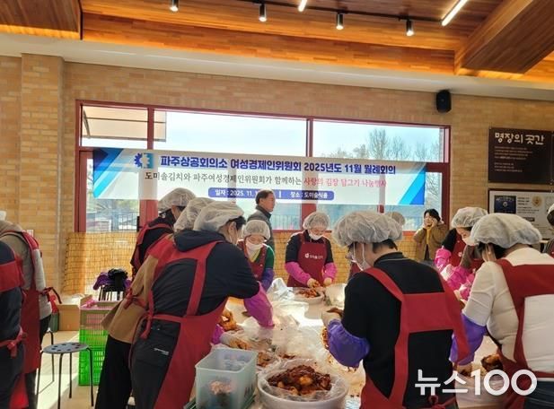 뉴스100 김동초 기자 | 파주시는 지난 17일 파주상공회의소 여성경제인위원회가 ‘사랑의 김장 담그기 나눔 행사’를 통해 파주시 취약계층을 위한 김장김치 10kg 500상자를 기탁했다고 밝혔다.