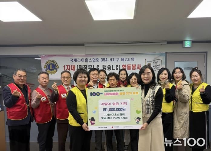 뉴스100 김동초 기자 | 의정부시 신곡2동주민센터는 11월 18일 국제라이온스협회 354-H 2지역 1지대가 성금 100만 원을 기탁하며 ‘100일간 사랑릴레이 배턴 잇기’에 동참했다고 밝혔다.