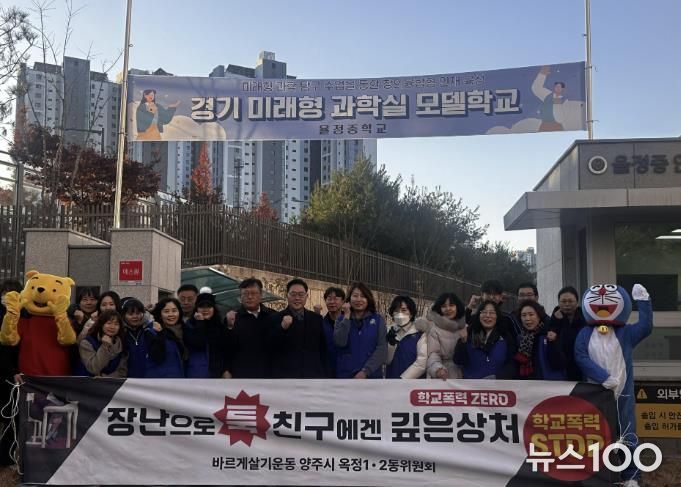 뉴스100 김동초 기자 | 바르게살기운동 양주시협의회와 바르게살기운동 옥정1·2동 위원회는 지난 18일 율정중학교에서 학생들의 안전한 학교생활 조성을 위한 학교폭력예방 캠페인을 진행했다.