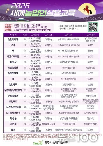 뉴스100 김동초 기자 | 양주시가 변화하는 농업환경에 대응하고 농업인의 현장 문제 대응 능력을 높이기 위해 ‘2026년 새해농업인실용교육’ 교육생을 모집한다.