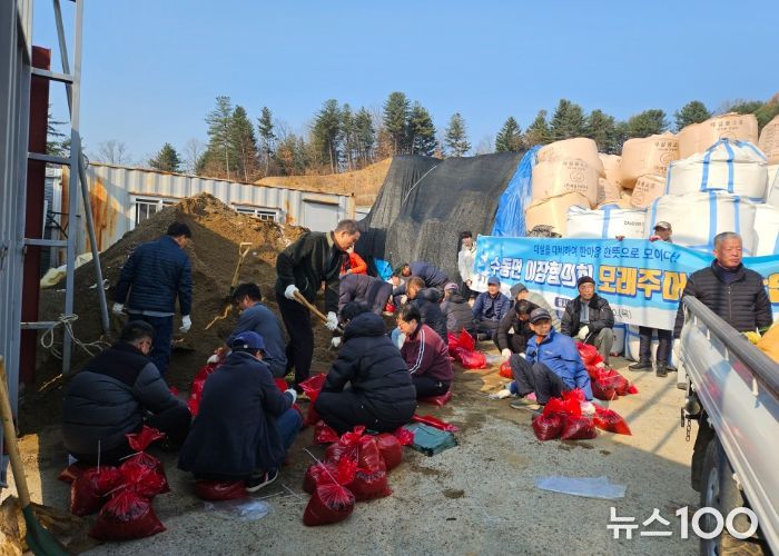 뉴스100 김동초 기자 | 남양주시는 21일 수동면사무소가 수동면 설해 전진기지에서 2025~2026년도 겨울철 강설 및 도로 결빙에 대비한 모래주머니 제작 행사를 진행했다고 밝혔다.