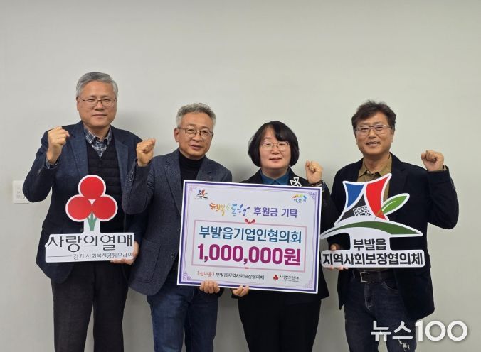 뉴스100 김동초 기자 | 부발읍 기업인협의회가 연말을 맞이하여 지역사회 나눔을 실천하기 위해 부발읍 행정복지센터에 후원금 100만 원을 기탁했다.