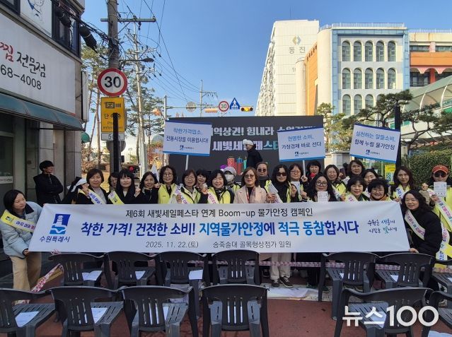 뉴스100 김동초 기자 | 수원특례시는 ‘제6회 새빛세일페스타 수원(22~30일)’와 연계해 지역 전통시장과 착한가격업소 이용을 장려하는 ‘붐업 물가안정 릴레이 캠페인’을 펼쳤다.