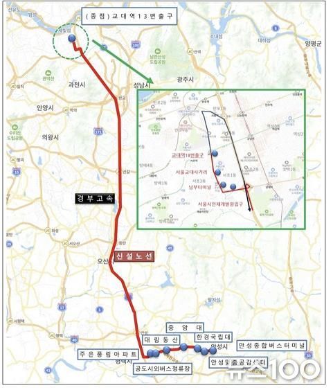 뉴스100 김동초 기자 | 안성시는 국토교통부 대도시권광역교통위원회 노선선정 심의에서 “안성종합버스터미널~서울남부터미널~교대역을 잇는 광역버스 광역버스 신규 노선이 26일 최종 선정됐다고 밝혔다.