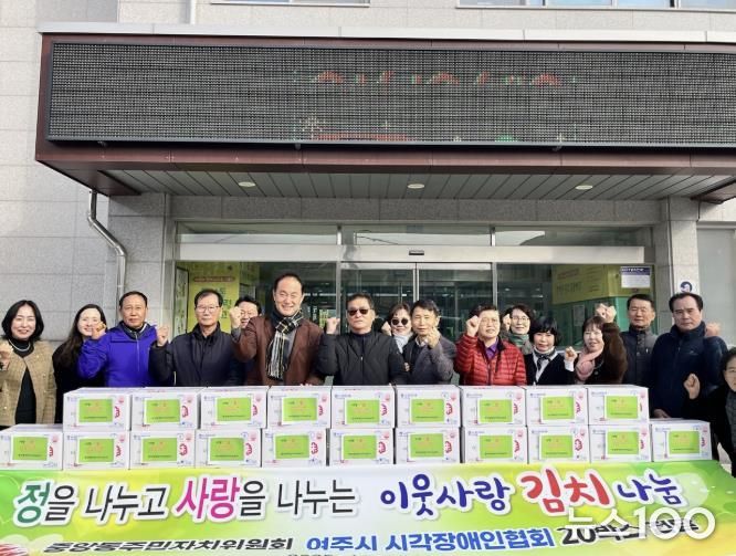 뉴스100 김동초 기자 | 여주시 중앙동 주민자치위원회는 26일 행정복지센터에서 여주 시각장애인협회에 김치 20박스 전달식을 진행했다.