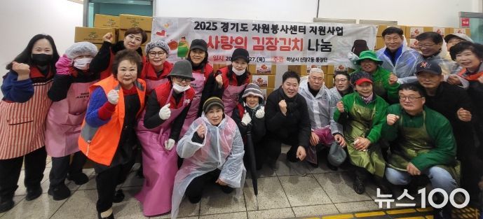 뉴스100 김동초 기자 | 하남시 신장2동 통장단은 경기도 자원봉사센터에서 공모한 “2025년 도민이 전하는 자원봉사 2차 김장지원 공모사업”에 선정되어 27일 자원봉사자들과 함께 김장김치를 정성스레 담궈 취약계층 200가구에 전달했다.