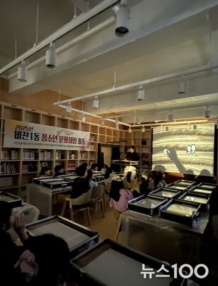 뉴스100 김동초 기자 | 평택시 비전1동 청소년지도위원회는 지난 2일부터 3일까지 이틀간 관내 지역아동센터 2곳에서 ‘2025 청소년 문화 체험 샌드아트 공연 및 체험 행사’를 성황리에 개최했다.