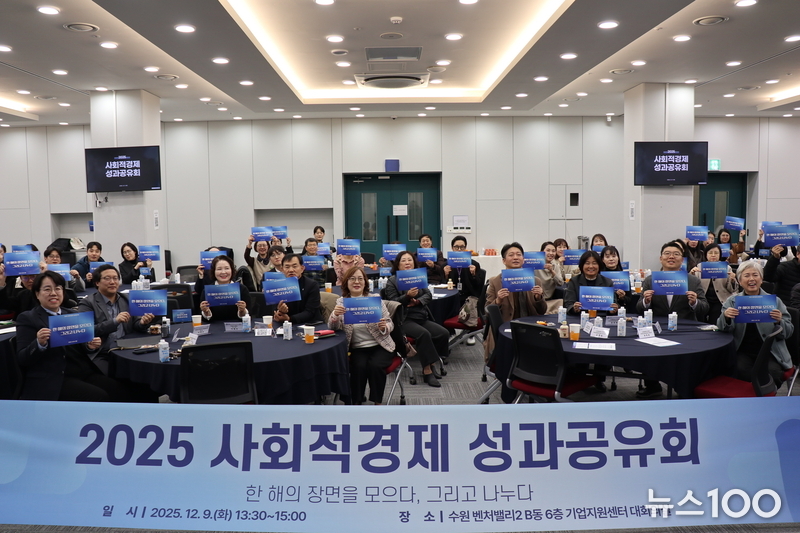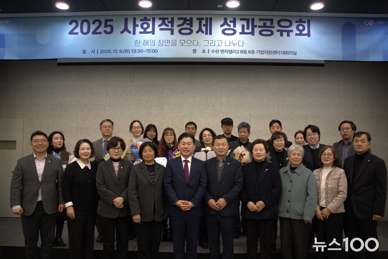 수원특례시의회 기획경제위원회(위원장 장정희)은 지난 9일, 수원 벤처밸리 내 기업지원센터에서 열린 ‘2025 사회적경제 성과공유회–한 해의 장면을 모으다, 그리고 나누다’에 참석했다. 수원시가 주최하고 수원도시재단이 주관한 이번 행사는 ▲사회적경제지원센터 주요 성과 발표 ▲사회적경제 활성화 유공 시상 ▲우수사례 공유 ▲참여자 간 네트워킹 등으로 진행되었고, 수원시사회적기업협의회, 수원시이종협동조합연합회, 수원시자활기업협회 등이 협력했다.