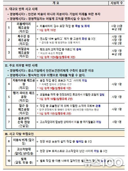 뉴스100 김동초 기자 | 고용노동부는 12월 16일 「중대재해 사고백서: 2025 실천만이 위험을 막는다」를 발간했다.