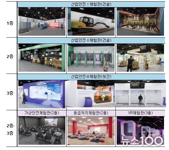 인천 안전체험교육장은 6개 테마관(산업안전1체험관, 산업안전2체험관, 산업안전3체험관, 응급처치체험관, 가상안전체험관, VR체험관)과 65종의 교육콘텐츠로 구성되어 추락, 끼임 등 산업현장에서 자주 발생하는 재해 유형을 실감 나게 체험할 수 있다.