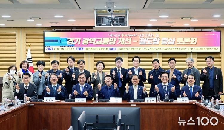 뉴스100 김동초 기자 | 경기도가 수도권 교통 문제를 해결을 위한 철도망 중심의 정책적 대안을 논의하기 위해 박정 국회의원 등 14명의 국회의원과 함께 공동으로 정책토론회를 열었다.