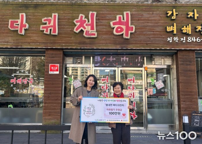 뉴스100 김동초 기자 | 남양주시는 지난 18일 별내면 소재 ‘뼈다귀천하’가 지역 내 취약계층 지원을 위해 후원금 100만 원을 별내면 지역사회보장협의체에 기탁했다고 밝혔다.