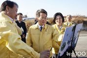 뉴스100 기자 | 28일 안성에서 19번째 민생경제 현장투어에 나선 김동연 경기도지사가 경기도 최남단 안성의 거점소독시설을 찾아 초동 방역 상황을 긴급 점검했다. 이번 점검은 지난 25일 충남 당진에서 발생한 아프리카돼지열병에 대한 선제적 방역 조치의 하나로 마련됐다. 김 지사는 현장에서 터널식 소독조에서 진행되는 가축 방역 과정을 지켜본 후 관계자들을 격려하고 겨울철 동물방역에 최선을 다해줄 것을 당부했다. 김 지사는 “조류인플루엔자와 아프리카돼지열병이 계속 전파 중이어서 걱정이다. 경기도는 빠른 대응, 강력한 방역, 신속한 지원의 3대 원칙으로 동물방역에 대처하겠다”며 “축산농가 보호와 축산업 발전을 위해 최선을 다하겠다. 축산농가 종사자 여러분들도 방역과 예방에 협조를 부탁드린다”고 강조했다. 돼지 33만 두를 사육하는 안성(도내 2위, 전국 4위)은 평택·화성과 근접한 돼지 사육 중심지다. 경기도는 방역대 설정, 이동 제한 등 광범위한 방역 조치를 시행하고 있다. 현장에서 김보라 안성시장, 윤종군 국회의원과 즉석 스탠딩 간담회 가져 소독시설 점검을 마친 김동연 지