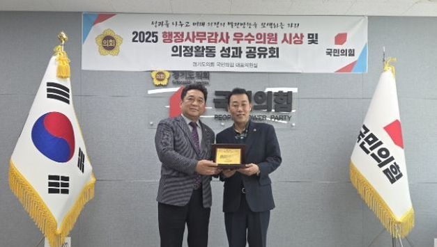뉴스100 김동초 기자 | 문병근 경기도의회 건설교통위원회 부위원장(국민의힘, 수원11)이 12일 경기도의회 국민의힘 회의실에서 열린 '2025 행정사무감사 우수의원 시상식 및 의정활동 성과 공유회'에서 ‘행정사무감사 우수의원’에 선정됐다. 이번 시상식은 행정사무감사를 통해 도민 중심의 정책 대안을 제시하고, 도정 전반의 운영을 꼼꼼히 살핀 의원들을 격려하기 위해 마련됐다. 문 부위원장은 2025년 행정사무감사 과정에서 도민의 입장에서 교통·건설·인프라 등 주요 현안을 세밀하게 점검하고, 예산과 정책 전반에 대한 현실적인 개선 방향을 제시한 공로를 인정받아 ‘행정사무감사 우수의원’으로 이름을 올렸다. 특히 공공기관 통신망 이중화, 교통 인프라 확충, 불법 주차 해소 및 고령운전자 교통안전 등 도민 안전과 생활편의 향상을 위한 실질적인 대안을 집중적으로 요구하여 주목을 받았다. 문병근 부위원장은 “뜻깊은 상을 주셔서 감사드린다”며 “앞으로도 도민의 눈높이에서 행정사무감사를 성실히 수행해, 현장의 목소리가 도정과 예산에 충실히 반영되도록 최선을 다하겠다”는 수상 소감을 밝혔다. 이어 “종합감사와 예산안 심의를 통해 도민이 체감
