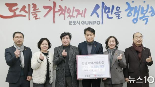 뉴스100 김동초 기자 | 군포시는 지난 9일, 안양·군포·의왕·과천 지역에서 활동하는 건축사 모임인 안양지역건축사회로 부터 현금 100만원을 기탁받았다. 안양지역건축사회는 180여명의 회원이 있으며 기금을 마련하여 연말이면 군포시에 성금을 기탁하고 있으며 “취약계층이 길고 추운 겨울을 안전하고 따듯하게 보내는데 도움이 됐으면 좋겠다”고 말했다. 하은호 군포시장은 “매년 겨울나기에 어려움이 있는 이웃을 위하여 사랑과 나눔을 실천하는 안양지역건축사회에 진심으로 감사드리며, 취약계층에게 잘 전달하겠다”고 말했다 기탁받은 후원금은 경기사회복지공동모금회를 통해 취약계층에 전달할 예정이다. [뉴스출처 : 경기도 군포시]