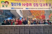 뉴스100 김동초 기자 | 광명시 철산3동 새마을부녀회는 지난 19일부터 20일까지 이틀간 철산3동 행정복지센터 앞마당에서 ‘사랑의 김장 나누기’ 행사를 열었다. 이번 행사에는 철산3동 새마을부녀회와 유관 단체 회원 50여 명이 참여해 정성껏 담근 김장김치를 취약계층 62가구에 10kg씩, 관내 경로당 9곳에는 20kg씩 전달했다. 또한 한국마사회 광명지사와 광명동부 새마을금고 등 지역의 여러 기관·단체가 따뜻한 나눔에 함께했다. 임순자 회장은 “물가 상승으로 김장 준비가 어려운 이웃들에게 정성껏 담근 김치가 따뜻한 마음으로 전해지길 바란다”며 “앞으로도 회원들과 함께 나눔과 봉사를 꾸준히 이어가겠다”고 전했다. 손영만 동장은 “쌀쌀한 날씨에도 이웃 사랑을 실천한 새마을회원들과 유관 단체원들에게 감사하다”며 “이번 김장 나눔으로 어려운 이웃들이 따뜻한 겨울을 보내길 바란다”고 말했다. 한편, 철산3동 새마을부녀회는 이웃돕기 바자회, 불고기·반찬 나눔, 거리 청소 등 다양한 봉사활동으로 따뜻하고 살기 좋은 지역사회 조성에 힘쓰고 있다. [뉴스출처 : 경기도 광명시]