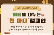 뉴스100 김동초 기자 | 시흥시장곡종합사회복지관은 연말을 맞아 지역사회에 따뜻한 마음을 전하기 위한 ‘마음을 나누는 한 마디’ 캠페인을 진행한다. 이번 캠페인은 이웃을 향한 응원의 말, 위로의 말, 사랑의 말을 담은 짧은 문장을 시민들로부터 응모 받아 서로에게 위로와 용기를 건네는 나눔의 장을 만들기 위해 마련됐다. 참여자는 직접 창작한 문장 또는 문학 작품 속 인용문 중 마음을 전하고 싶은 한 문장을 제출할 수 있다. 응모 기간은 11월 3일부터 11월 14일까지이며, 시흥시민이라면 누구나 참여할 수 있다. 참여 방법은 시흥시장곡종합사회복지관 1층 복도 현장 신청 또는 온라인으로 하면 된다. 선정된 문장은 내부 심사를 거쳐 캘리그래피 작품으로 제작되며, 오는 12월 시흥시장곡종합사회복지관 복도갤러리에서 전시된다. 전시된 작품은 시민들에게 한 해를 따뜻하게 마무리할 수 있는 작은 위로의 메시지로 전달될 전망이다. 시흥시장곡종합사회복지관 관계자는 “짧은 문장이지만, 시민 한 사람 한 사람의 따뜻한 마음이 모여 이웃에게 큰 위로가 될 것”이라며 “많은 시민이 이번 캠페인에 참여해 따뜻한 시흥을 함께
