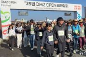 뉴스100 김동초 기자 | 경기도 파주 임진각 평화누리 일원에서 비무장지대(DMZ) 일원을 걷고 달리며 생태·평화·역사의 가치를 몸으로 느끼는 이틀간의 축제가 펼쳐졌다. DMZ OPEN 페스티벌(Festival)의 대표 스포츠 프로그램으로 1일에는 ‘2025 DMZ OPEN 평화걷기’가 2일에는 ‘2025 DMZ OPEN 평화 마라톤’이 개최됐다. 첫째 날 진행된 ‘DMZ 평화 걷기’는 민통선 내 임진강변 생태탐방로를 따라 걸으며 생태적 가치와 평화의 의미를 직접 체험하는 행사로, 올해는 야니스 베르진슈(Janis Berzins) 주한 라트비아 대사를 비롯해 13개국 주한 외국대사, 독립유공자 후손, 최재천 D.O.F.조직위원장 등 약 1,500여 명이 함께했다. 개막식에서는 경기도 홍보대사로서 활동중인 김규리를 비롯한 참가자 대표 6명이 무대 앞에서 릴레이 형식으로 평화 메시지를 낭독할 때마다, 참가자 전원이 “DMZ는 평화다”라고 화답하는 도민 참여 이벤트가 펼쳐져 현장의 열기를 더했다. 이어 김대순 행정2부지사의 힘찬 타고(타북)로 평화를 기원하며 걷기를 시작했다. 참가자들은 DMZ 내 서식하