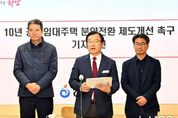 뉴스100 김동초 기자 | 이현재 하남시장은 17일 “10년 공공임대아파트에 거주하는 무주택 서민들의 주거 안정을 위해 공공임대아파트의 분양전환가 산정기준을 5년 공공임대아파트와 동일한 수준으로 변화될 수 있도록 국토교통부에 제도 개선을 요청했다”고 밝혔다. 이현재 시장은 이날 시청 상황실에서 진행된 기자회견을 통해 “10년 공공임대아파트의 분양전환가 산정기준이 5년 공공임대아파트 보다 매우 불리하게 되어있어 무주택 서민들의 내 집 마련 꿈을 산산이 조각내고 있다”며 이같이 말했다. 문제의 핵심은 10년 임대와 5년 임대주택 간의 ‘분양전환가격 산정 방식’에 있다. 현재 10년 공공임대주택은 분양전환가격이 ‘현재 시세’인 감정평가금액을 넘지 못하도록만 되어 있다. 즉, 최근 몇 년간 폭등한 부동산 시세가 사실상 그대로 분양전환가격이 되는 구조다. 반면, 5년 공공임대주택은 ‘최초의 건설원가’와 ‘현재 시세(감정평가금액)’를 더한 뒤 2로 나눈(산술평균한) 금액으로 분양전환가격이 책정된다. 쉽게 말해, 5년 임대 입주자는 최초의 저렴했던 ‘원가’ 혜택을 절반이라도 받지만, 10년 임대 입주자는 그 혜택 없이 10