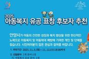 뉴스100 김동초 기자 | 안양시는 오는 12일까지 아동의 건전한 성장과 복지 향상에 헌신한 시민과 단체를 발굴 및 격려하고자 ‘아동복지 유공 표창’ 후보자를 추천받는다고 5일 밝혔다. 표창 분야 및 규모는 ▲아동복지 유공 분야 4점 ▲아동학대 예방 유공 분야 2점으로 총 6점이다. 대상자격은 안양시민, 사회복지사, 단체 등으로 아동학대 예방, 아동보호, 아동권리 증진 및 아동복지 향상 등에 기여한 자이고 해당 분야에 공고일 기준 1년 이상 직접 참여해 현저한 공적이 있어야 한다. 희망자 또는 후보자를 추천하려는 사람은 추천권자를 통해서 신청서, 공적조서, 증빙자료 등을 이메일, 방문 또는 우편(안양시청 아동과)으로 제출할 수 있다. 추천권자는 안양시 소속 기관의 장(부서장, 동장, 산하기관장)이거나 관내 협업기관장 또는 사회복지사업법 제2조1호에 열거된 사회복지사업 관련 법률에 따른 사회복지시설의 장 등이다. 선정결과는 이달 18일경 홈페이지를 통해 발표하며, 오는 12월 시상식을 개최할 예정이다. 유공자 표창의 선발기준, 선정결과 발표 등 자세한 사항은 안양시 홈페이지에서 확인할 수
