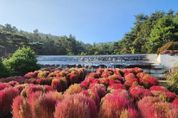 뉴스100 김동초 기자 | 주변 섬들의 이름과 지명을 알 수 있는 전경 안내판이 설치된 전망대에 올라서면 시원한 가을 바닷바람을 맞으며 서해안을 볼 수 있고, 다양한 가을꽃이 만개한 곳! 바로 경기도 안산 대부도 인근에 소재한 바다향기수목원이다. 추석연휴 기간을 맞아 자연의 싱그러운 녹음을 전해주고 있는 바다향기수목원에는 수목원 내 식재된 다양한 가을꽃과 함께 890개 국화 화분이 일제히 개화를 하고, 목화 1,200본과 붉게 단풍이 든 댑싸리 500개, 다양한 색상의 웨이브페츄니아와 로즈마리 1,100본이 가을의 색과 향기를 전하고 있다. 또한 ‘바다향기수목원 사용설명서’, ‘자연 속 숨은 보물찾기’, ‘속속들이 소나무’, ‘흙은 재미있는 우리 친구’ 등 다양한 숲 해설 프로그램이 가을철 수목원을 찾는 가족 단위 방문객들을 맞이하고 있으며, 연중 토요일과 일요일에 신청을 받아 운영되고 있는 ‘향나무 목걸이 만들기’, ‘불어라 피리’ 등의 체험프로그램 또한 관람객을 위해 준비되고 있다. 더욱이 수목원 내 염생식물원에 있는 ‘바다향기전시관’을 지역사회와 예술가를 위한 기획전시실로 개방해 10월 3일부터 12일까지
