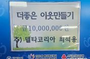 뉴스100 김동초 기자 | 안양시 만안구 안양1동 행정복지센터는 ㈜델타코리아로부터 안양1동 ‘더좋은 이웃만들기’ 사업 성금 1천만 원을 전달받았다고 4일 밝혔다. 용인시 기흥구에 위치한 ㈜델타코리아는 분양대행업과 주거용 건물 개발 및 공급을주력으로 하는 중소기업으로, 올해 2월에 경기 광주시에 어려운 학생 장학금 1,000만원을 기탁하고, 작년에도 지역아동센터와 장애인 복지시설 등 소외계층을 대상으로 매년 기부하는 등 나눔문화 확산과 사회공헌활동을 꾸준히 이어오고 있다. 안양1동의 ‘더 좋은 이웃만들기’로 기탁된 금액은 지역사회보장협의체를 통해 ‘ 명절 정 나눔행사’ , ‘독거 어르신 효잔치 및 콘서트관람’, ‘고시원 여인숙 거주자 반찬쿠폰 지급, 열무김치 배부’ 등 관내 저소득주민들을 돕는 다양한 사업에 사용된다. 최석용 대표는 “우리 기업이 받은 사랑을 다시 사회에 환원할 수 있어 기쁘게 생각한다. 단순한 금전적 지원을 넘어, 지역사회와 함께 성장하고 앞으로도 기업의 사회적 책임을 다하겠다”고 전했다. 신미경 안양1동장은 “델타코리아 최석용 대표님께 진심으로 감사드린다. 이 기부금은 어려움을 겪