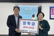 뉴스100 김동초 기자 | 라의숙 군포시 궁내동통장협의회장은 10월 1일 군포e비즈니스고등학교에 장학금을 전달하며 지역 청소년들의 꿈을 응원하는 뜻깊은 나눔을 실천했다. 이번 장학금은 라의숙 통장이 ‘궁내동 마을의제 발굴 경진대회’에서 금상을 수상하며 받은 상금 50만원 전액을 기부한 것으로 지역사회 발전을 위한 아이디어가 다시 지역 인재를 위한 지원으로 이어졌다는 점에서 더욱 의미가 깊다. 장학금은 군포e비즈니스고등학교 내 우수한 학생들에게 수여될 예정이다. 라의숙 통장은 평소 지역사회를 위한 다양한 활동에 앞장서며 교육·복지·공익 분야에서 꾸준한 기여를 이어오고 있다. 이번 장학금 기부 역시 지역 청소년들의 학업과 미래를 응원하는 실천적 나눔의 일환으로 그녀의 지역사랑이 고스란히 담겨 있다. 라의숙 회장은 “마을을 위한 고민이 다시 학생들을 위한 희망으로 이어져 기쁘다”며 “앞으로도 지역 청소년들을 위해 학생들의 학업 성취를 응원하는 지속적인 나눔활동과 관심을 이어가겠다”고 전했다. [뉴스출처 : 경기도 군포시]