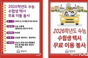 뉴스100 김동초 기자 | 성남시는 오는 11월 13일 ‘2026학년도 대학수학능력시험’이 치러지는 수능 당일, 지역 내 26개 시험장(465개 시험실)에서 시험을 치르는 1만2,533명의 수험생을 위해 특별 교통 대책을 시행한다. 개인택시와 법인택시 총 950여 대가 오전 7시부터 8시까지 ‘2026학년도 수능 수험생 택시 무료 이용 봉사’ 표지를 부착하고, 수험생을 대상으로 시험장까지 무료 운행 서비스를 제공한다. 수험생은 성남콜택시(031-755-4000)를 통해 택시를 호출하면 시험장까지 무료로 이동할 수 있다. 이마트성남점, 은행시장, 모란역 8번 출구, 성남종합버스터미널, 미금역 1번 출구 등 5곳의 주요 택시정류장에서는 수능 수험생이 무료 택시를 바로 탑승할 수 있도록 운영된다. 시는 수험생의 대중교통 이용 편의를 위해 등교 시간대인 오전 6시부터 8시 10분까지 광역·시내·마을버스 109개 노선을 집중 배차해 운행한다. 시험장 주변 교통 혼잡을 줄이기 위해 불법 주정차 차량에 대한 단속을 강화하고, 수험생 차량의 원활한 이동을 방해하는 경우 즉시 견인 조치할 예정이다. 이