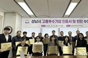 뉴스100 김동초 기자 | 성남시는 어려운 경제 여건 속에서도 지역 일자리 창출에 기여한 18개 기업을 ‘2025년 고용우수기업’으로 선정하고, 10일 인증서와 현판을 수여했다. 이날 오후 3시 성남시청 재정경제국 회의실에서 열린 수여식에는 선정된 기업의 대표및 실무책임자들이 참석해 고용우수기업 인증서(유효기간 2년)와 현판을 전달받았다. ‘성남시 고용우수기업 인증제’는 기업의 고용 확대를 유도하고 지속 가능한 성장을 지원해 지역경제를 활성화하기 위한 제도로, 일반 고용우수기업과 청년 고용우수기업 두 분야에서 기업을 선정해 다양한 인센티브를 제공하고 있다. 시는 지난 8월 서류심사와 현장조사를 거쳐 일반 고용우수기업 9개사와 청년 고용우수기업 9개사를 최종 선정했다. 2025년 일반 고용우수기업으로는 △에스에스티랩 △우보재난시스템 △라미나 △메디에이지 △테라시온바이오메디칼 △에이텍시스템 △에이텍 △뉴빛테크놀러지 △오래온라이프사이언스가, 청년 고용우수기업으로는 △비엔에스테크 △알에프코어 △우노실리콘 △아이브릭스 △제노레이 △아와소프트 △에이텍모빌리티 △한솔생명과학 △아이렌이 선정됐다. 선