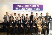 뉴스100 김동초 기자 | 안양시는 16일 오전 11시 30분 관내 음식점에서 지역사회와 이웃을 위해 나눔을 실천한 14개 기업을 대상으로 간담회와 함께 ‘착한기업’ 및 ‘이에스지(ESG)나눔기업’ 감사패 전달식을 가졌다. 나눔 실천에 감사의 마음을 전하고 나눔문화를 활성화하기 위한 이번 행사에는 최대호 안양시장과 14개 기업 대표 및 임원진, 구재관 지역사회보장협의체 민간위원장, 김효진 경기사회복지공동모금회 사무처장 등 20여명이 참석했다. 안양시 착한기업은 2년 이상 지속적으로 연평균 1천만원 이상을 기부한 기업으로, 이날 ▲(주)텔레트론 ▲이알케이솔루션(주) 등 2곳이 착한기업 감사패를 받았다. 이에스지(ESG)나눔기업은 지난해 1천만원 이상을 안양시에 기부한 기업으로, 착한기업으로 선정된 2개 기업과 ▲사회복지법인 백우현진복지재단 ▲(주)코스콤 ▲HL홀딩스 주식회사 ▲㈜쿠스코 ▲㈜대현환경 ▲㈜스크린에이치디코리아 ▲㈜벨루션네트웍스 ▲지에스파워(주) ▲디엔에프솔류션 ▲라온디앤씨(주) ▲평촌교통 ▲인창전자(주) 등 14개 기업이 이에스지(ESG)나눔기업 감사패를 받았다. 최대호 안양시장은 “기부는
