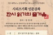 뉴스100 김동초 기자 | 안양시 석수도서관은 안양대학교 HK+사업단 지역인문학센터와 함께 시리즈기획 인문강좌의 일환인‘한시 읽기의 즐거움’ 강좌를 오는 11월 7일부터 12월 5일까지 운영한다고 17일 밝혔다. 이번 강좌를 통해 수강생들은 작사(作詞)와 작곡(作曲)의 특징을 동시에 지닌 한시(漢詩)의 형식미를 감상하고, 과거와 현재를 잇는 전통이 체현된 문화 텍스트로서의 한시 세계를 탐방한다. 석수도서관 관계자는 “석수도서관과 안양대학교 지역인문학센터가 협업하여 진행하는 이번 시리즈기획 인문강좌를 통해 시민들이 한시의 매력적인 세계를 깊이 탐구하고, 한시를 읽는 즐거움을 알 수 있길 바란다”고 밝혔다. 서울대학교 중국어문화연구소 책임연구원이자 한시 칼럼니스트 강성위가 진행하는 이번 강의는 10월 21일 10시부터 안양시도서관 홈페이지에서 접수하면 된다. [뉴스출처 : 경기도 안양시]