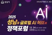 뉴스100 김동초 기자 | 성남시는 11월 14일 오후 4시 시청 2층 모란관에서 ‘2025 성남을 글로벌 AI 허브로 정책포럼’을 개최한다. 이번 포럼은 성남시 인공지능(AI) 산업의 현재를 진단하고, 제4차 산업혁명 시대의 기술 변화에 맞춰 성남시가 세계적인 AI 혁신 거점도시로 도약하기 위한 정책 방향을 모색하기 위해 마련됐다. 좌장은 강대희 서울대학교 의과대학 교수가 맡으며, △‘AI 반도체 동향 및 추진현황’(황태호 한국전자기술연구원 반도체 디스플레이 연구본부장) △‘AI 공급망: 중동의 사례를 기반으로’(이정우 ㈜지에스아이엘 대표이사) △‘AI for Every Citizen’(황희 ㈜카카오헬스케어 대표이사) △‘초급변 AI 콘텐츠 시대, K-컬처 글로벌 창의인재 육성’(정무식 가천대 게임·영상학과 교수) 등 네 개 주제 발표가 진행된다. 이어지는 지정 토론에는 정송 KAIST AI대학원 원장, 유태준 ㈜마음에이아이 대표, 이덕희 성남산업진흥원 전략산업본부장, 김의성 성남시정연구원 경제사회연구실장이 참여해 발표 주제별 심층 토론을 이어갈 예정이다. 성남시는 이번 포럼에서 제시된 ‘AI·4차산업특별도시 성남’의 발전 전략과 글로벌 AI 허브도시로의