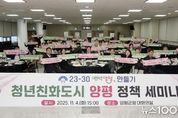 뉴스100 김동초 기자 | 양평군은 지난 4일 오후 3시 양평군청 대회의실에서 ‘청년친화도시 조성을 위한 미래 방향성과 차별화 전략’을 주제로 ‘23-30 매력 양평 만들기’ 정책세미나를 개최했다. 이번 세미나는 청년이 머물고 싶은 도시, 청년이 주도적으로 참여할 수 있는 ‘매력양평’ 구현을 위한 실질적인 정책 방향을 논의하고자 마련됐다. 이날 행사에는 전진선 양평군수를 비롯해 양평군의회, 양평군 정책자문단, 청년정책위원회, 청년단체 등 관계자 100여 명이 참석했다. 1부에서는 인사말씀과 축사, 기념촬영이 진행됐으며, 2부에서는 손신 교수(아신대학교, 양평군 정책자문단 위원)의 ‘청년친화도시 조성을 위한 미래 방향성 및 차별화 전략’과 길청순 이사장(지역농업네트워크 서울경기제주협동조합, 양평군 정책자문단 위원)의 ‘농업·농촌의 미래와 청년농업인’ 발제가 이어졌다. 전진선 양평군수는 “청년이 머물고 싶은 도시, 청년이 주도적으로 참여할 수 있는 ‘매력양평’을 만들기 위해 행정과 지역사회가 함께 힘을 모아야 한다”며 “오늘 세미나에서 제시된 다양한 의견을 향후 청년정책에 적극 반영하겠다”고 밝혔다. 한편, 양평군은 이번 세미나를 통해 수렴된 다양한 제안과 청년