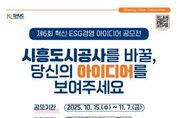 뉴스100 김동초 기자 | 시흥도시공사는 10월 15일부터 11월 7일까지 ‘제6회 시흥도시공사 혁신·ESG경영 아이디어 공모전’을 개최한다. 이번 공모전은 공사의 주요 사업과 연계된 ‘디지털 기반 경영 구현’ 및 ‘지역상생‧협력’ 2개 분야로 진행되며, 공사에 관심 있는 시민 누구나 참여할 수 있다. 공모전 참가를 위해서는 공사 누리집 내 ‘혁신 아이디어 공모전’ 게시판에서 신청서를 내려받아 작성한 후 게시판 등록 또는 담당자 이메일로 제출하면 된다. 공사는 이번 공모전을 통해 시민의 시각에서 공사의 혁신 방향을 모색하고, 지역사회와의 상생을 강화하는 등 실질적 사업 발굴로 이어질 수 있도록 연계할 계획이다. 우수 아이디어로 선정된 제안은 최우수 1건(50만 원), 우수 1건(30만 원), 장려 2건(각 20만 원) 총 4건에 대해 온누리상품권이 수여되며, 선착순 참여자 5명과 일반 참여자에게도 추첨 이벤트를 통해 소정의 기프티콘을 제공할 예정이다. 자세한 사항은 공사 누리집을 통해 확인할 수 있다. 유병욱 사장은 “작은 아이디어 하나가 공사의 변화를 이끌 수 있다”며 “시민이 체감할 수 있는 다