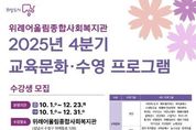 뉴스100 김동초 기자 | 성남시는 오는 9월 19일까지 위례어울림종합사회복지관의 120개 강좌 수강생 2896명을 모집한다. 모집은 수영(76개 강좌, 1840명), 교육문화(44개 강좌, 1056명) 등 2개 분야에서 이뤄진다. 수영 분야는 △강습 수영(16회·회당 60명) △아쿠아로빅(4회·회당 60명) △자유수영(8회·정기권 1개월 60명, 일일권 현장접수 20명) 등의 프로그램을 오는 10월 1일부터 12월 31일까지 운영하며, 1인 1강좌만 신청할 수 있다. 교육문화 분야는 유아, 아동, 성인 등 대상별 프로그램을 오는 10월 1일부터 12월 23일까지 운영한다. 유아(5~7세) 대상 강좌는 △창의미술(1회·15명) △영어동화 스토리텔링(1회·15명) 등이다. 아동(8~13세) 대상 강좌는 △한자 자격증반(2회·회당 15명) △바둑·체스(1회·20명) △농구교실(3회·회당 15명) △창의미술(1회·15명) △K-POP댄스(1회·20명) △주산 암산(1회·20명) △로봇 코딩교실(1회·15명) △성장요가(2회·회당 15명) △태블릿 드로잉교실(1회·회당 15명) 등이다. &nb