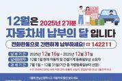 뉴스100 김동초 기자 | 평택시는 2025년 12월 정기분 자동차세 16만 5천 건에 대해 199억 원을 부과·고지하고 납부 기한 내 납부하도록 적극적인 홍보에 나섰다고 밝혔다. 자동차세는 연 2회(6월, 12월) 부과하는 정기분 세목으로, 이번 제2기분 자동차세 부과 대상은 과세기준일인 12월 1일 현재 평택시에 등록되어있는 자동차, 이륜차, 건설기계 등이며, 7월 1일부터 12월 31일까지의 보유기간에 대해 차량의 용도와 차종, 배기량, 차령에 따라 세액을 차등 적용하여 부과한다. 아울러, 연세액 10만 원 이하의 경차·화물차·승합차량은 6월에 전액 과세하나 6월 이후에 취득했다면 이번 제2기분 과세 대상에 포함되며, 자동차세를 연납한 차량은 이번 과세 대상에서 제외된다. 납부 기한은 12월 16일부터 31일까지이고, 고지서는 우편 발송되며 전자고지 신청자는 전자우편 또는 모바일 앱에서 확인이 가능하다. 납부는 ‘지방세입계좌’ 서비스를 통해 이체 수수료 없이 납부할 수 있으며, 이외에도 전국 금융기관 방문 혹은 은행 자동화기기(CD/ATM) 등에서도 고지서 없이 신용카드 또는 통장으로 납부할