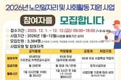 뉴스100 김동초 기자 | 광명시가 어르신의 건강한 노후와 사회참여 확대를 위해 노인 일자리 참여 기회를 넓힌다. 시는 오는 12월 1일부터 12일까지 ‘2026년 노인일자리 및 사회활동 지원사업’ 참여자 3천384명을 모집한다. 내년도 사업 예산은 전년보다 1억 7천400만 원이 늘어난 162억 원이 편성됐다. 이번 사업은 ▲노인 공익 활동 ▲노인 역량 활용 ▲공동체 사업단 ▲취업 지원형 등 네 가지 유형으로 운영한다. 노인공익활동은 65세 이상 기초·직역연금 대상 어르신이 지역 환경정비, 공공시설 지원 등 공익 활동에 참여하는 사업이다. 노인역량활용은 돌봄·안전 등 도움이 필요한 가정이나 시설에 서비스를 제공하는 역할을 맡으며, 공동체 사업단은 60세 이상 어르신이 소규모 매장 운영 또는 전문사업단 활동으로 경제활동을 이어갈 수 있도록 지원한다. 취업지원형은 구인 기업과 어르신을 직접 연계해 민간 분야에서 일자리를 찾을 수 있도록 돕는다. 참여를 원하는 어르신은 주소지 동 행정복지센터 또는 7개 수행기관(광명시니어클럽, 대한노인회 광명시지회, 소하노인종합복지