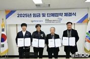뉴스100 김동초 기자 | 여주도시공사와 민주노총 공공운수노조 여주도시공사지회는 12월 9일 여주도시공사 사옥에서 2025년 임금 및 단체협약 체결식을 개최했다고 밝혔다. 이번 협약은 상호 신뢰와 존중을 바탕으로 진행된 성실한 교섭의 결실로, 노사 상생과 지속 가능한 발전을 위한 중요한 발판이 될 전망이다. 공사와 노동조합은 이번 협약을 통해 직원들이 안정적인 근무여건 아래 역량을 발휘할 수 있는 환경을 조성하고, 공공기관으로서 사회적 책임을 다하기 위한 제도 개선과 협력 체계를 강화해 나갈 방침이다. 임명진 사장은 “이번 임금·단체협약은 노사 간 소통과 이해를 바탕으로 이루어낸 결실”이라며, “앞으로도 신뢰 기반의 노사 협력을 통해 시민에게 더 나은 공공서비스를 제공할 수 있도록 노력하겠다"고 밝혔다. 여주도시공사는 앞으로도 합리적인 노사관계 정착을 위해 소통과 협력을 강화하고, 시민 중심의 공기업으로서 책임과 역할을 다하기 위한 다양한 노력을 이어갈 계획이다. [뉴스출처 : 경기도 여주시]