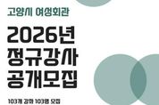 뉴스100 김동초 기자 | 고양특례시 여성회관에서 2026년 정규강좌 운영을 위한 정규강사진을 공개 모집한다. 고양시 여성회관은 지난 9월 고양시민 및 수강생 대상으로 실시한 수요조사 결과를 바탕으로 2026년도에 103개 강좌를 개설할 예정이다. 이에 따라 ▲컴퓨터⸱IT ▲외국어 ▲의상 ▲제빵⸱떡 등 10개 분야 103명의 전문 강사를 모집한다. 강사 지원 서류 접수 기간은 10월 27일부터 10월 30일까지이며, 고양시 여성회관 누리집을 통해 신청이 가능하다. 강사 지원자는 3개 강좌(주 14시간 강의 시간 이내)까지 지원할 수 있으며, 1차 서류 심사 및 2차 면접 심사를 거쳐 각 분야⸱지원 강좌별 고득점자 순으로 선발한다. 시 관계자는 “고양시 여성회관은 다양하고 질 좋은 강좌 운영을 통해 수강생들의 자기개발 및 삶의 질 향상을 위해 노력하고 있다”며, “앞으로 여성회관 정규강좌를 함께 이끌어갈 우수한 강사님들의 많은 지원을 바란다”고 말했다. [뉴스출처 : 경기도 고양시]